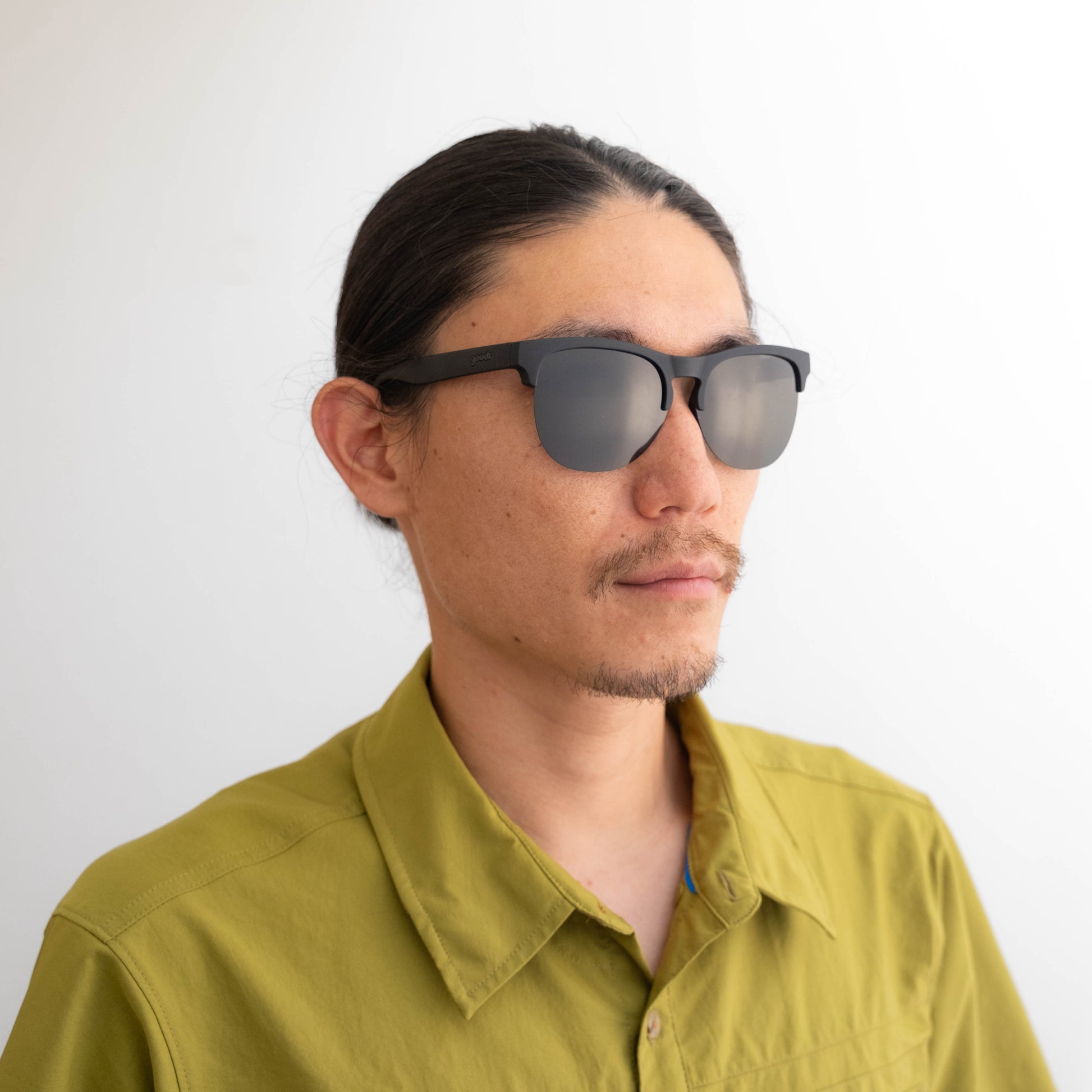 - ラウンドレンズ×ハーフリムでこなれた雰囲気に