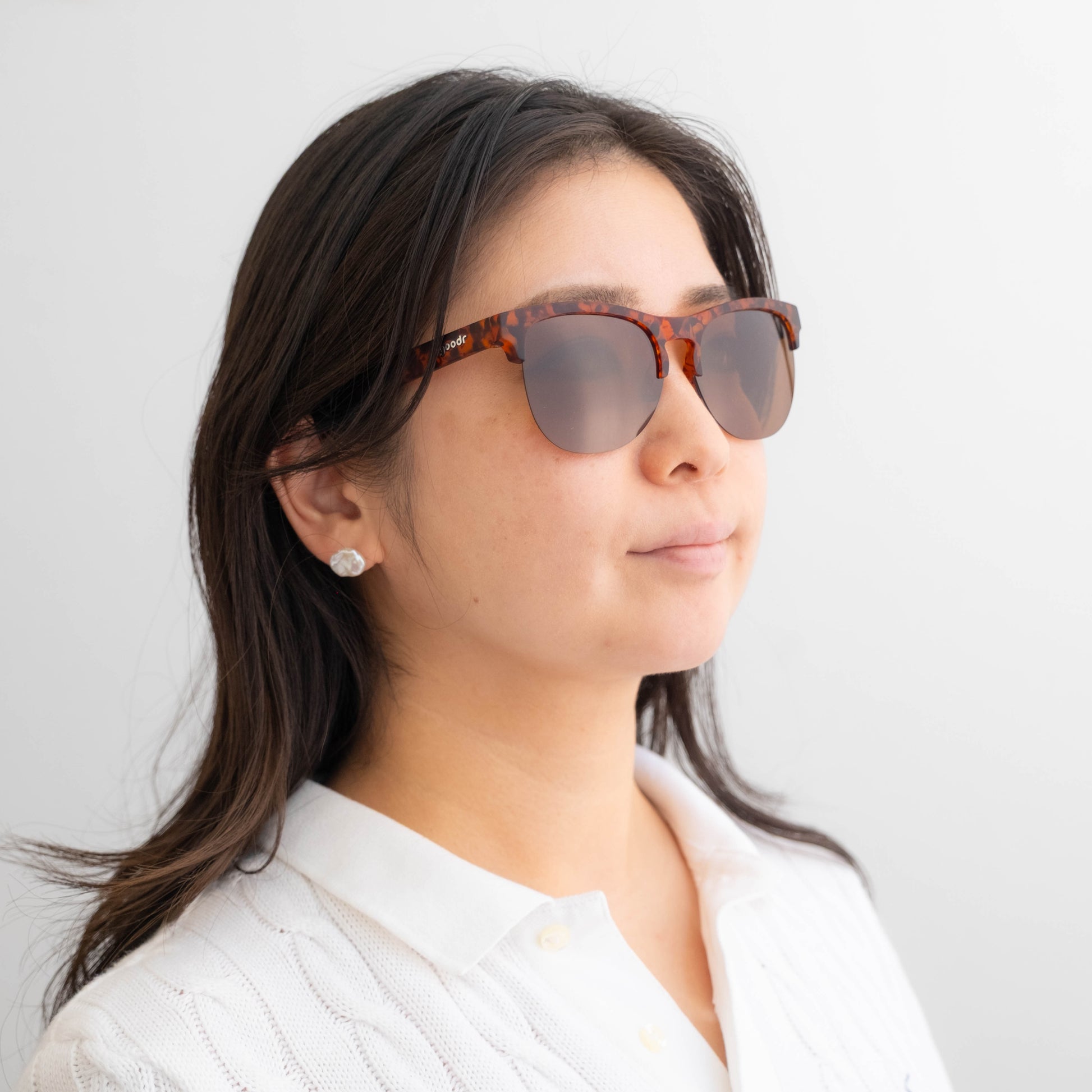- クラシカルな雰囲気を纏ったべっ甲柄ハーフリム