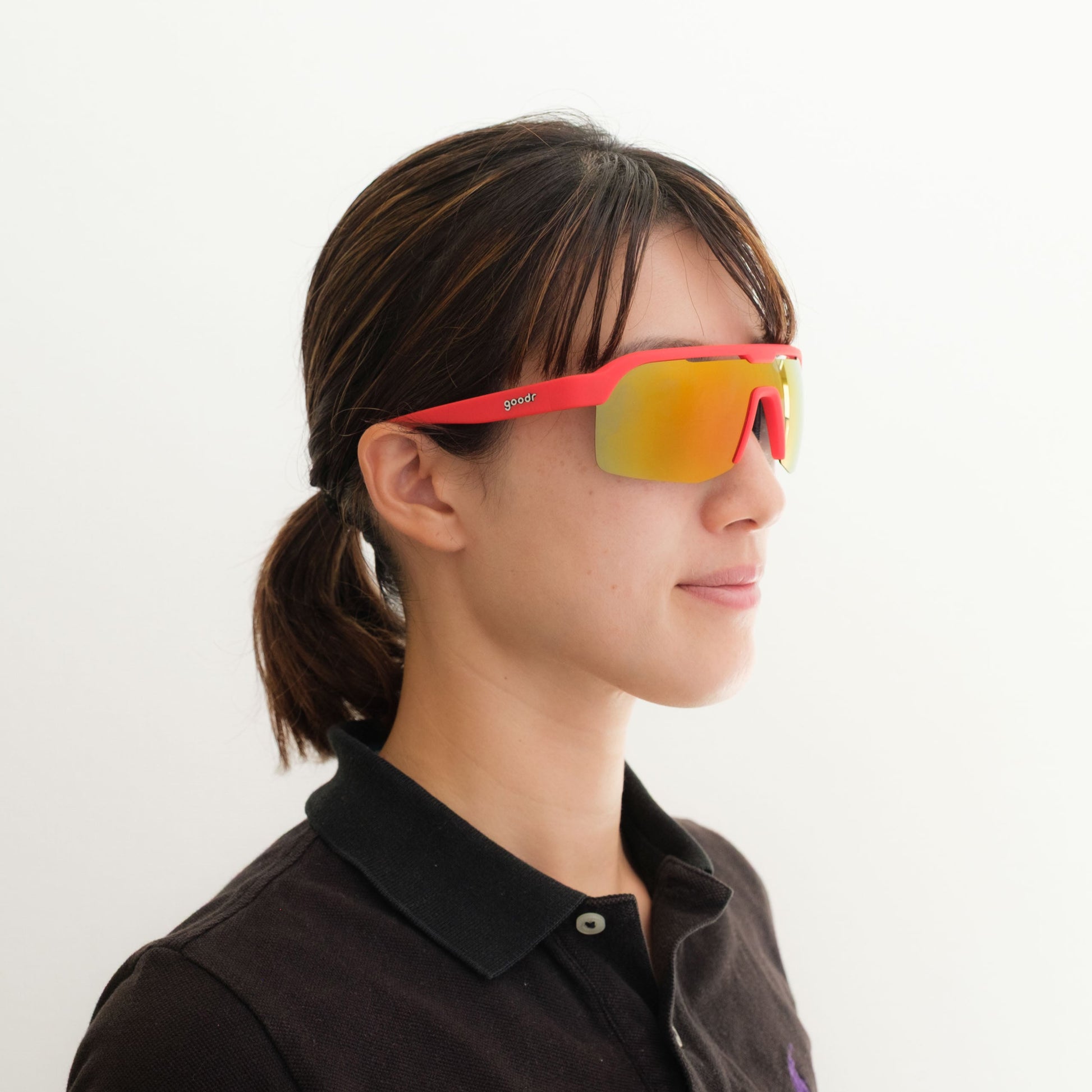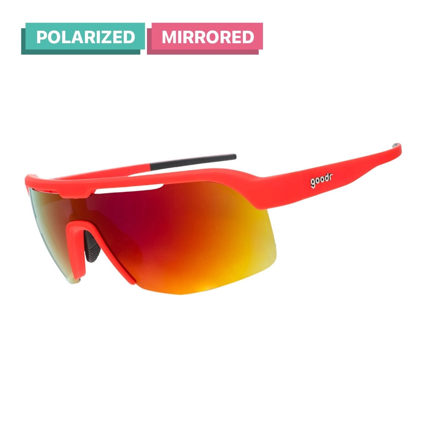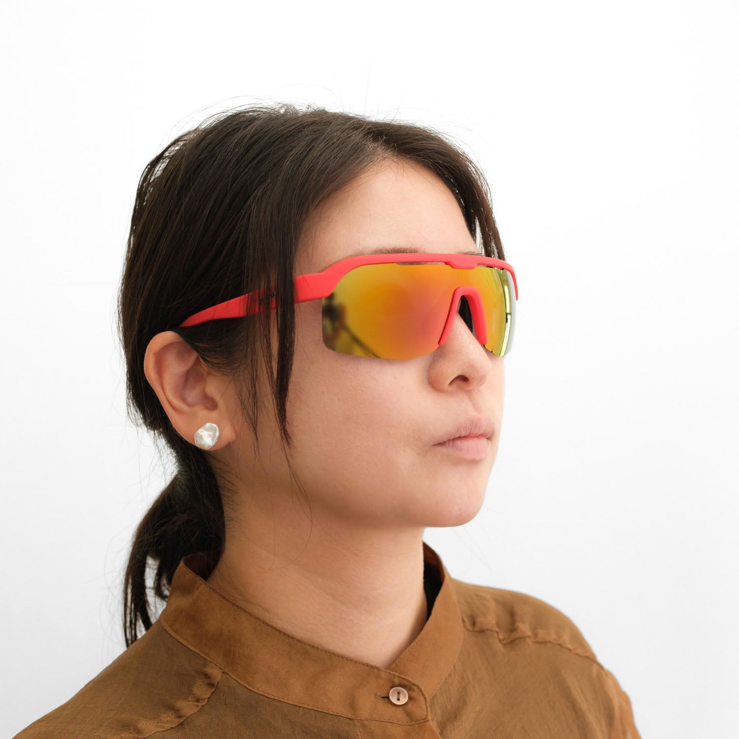 ダンテの灼熱地獄に住む者たちは、「地獄のように燃えるシンスプリント」に永遠に苦しむ運命。でも安心して。このレッドのシールドサングラス(ハーフリムフレーム)は、どんなに汗だく(いや、地獄級にドロドロ)でも滑らないし、ズレない。