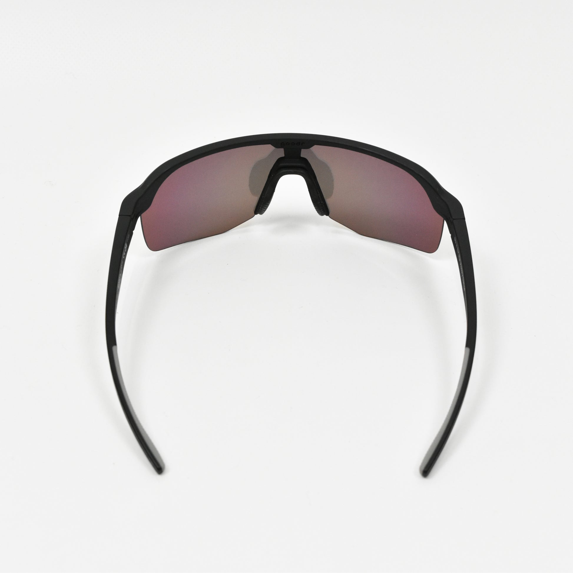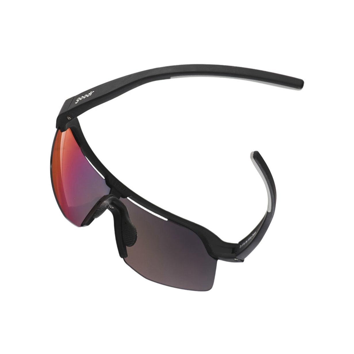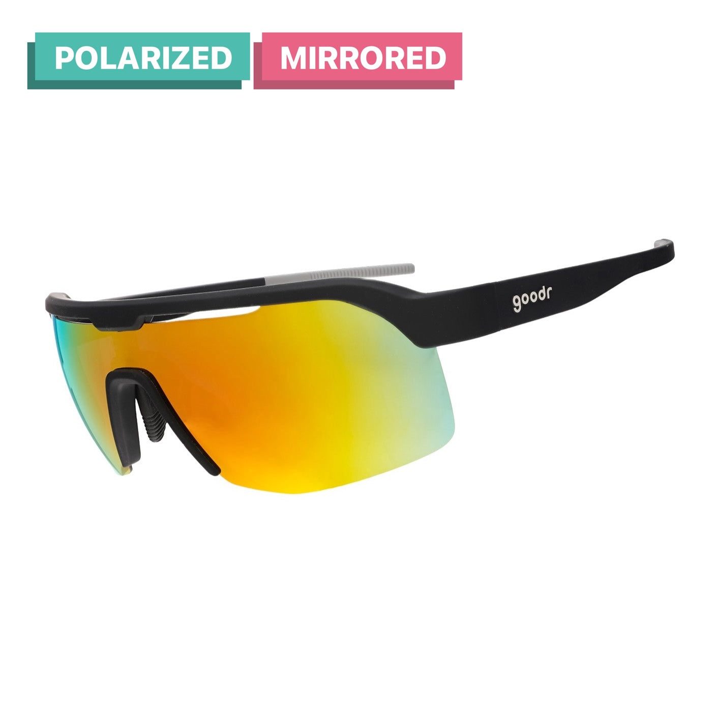 このブラックのシールドサングラス(ハーフリムフレーム+バーントオレンジのミラーレンズ)は、汗だくでスパイクを決めてもズレないし跳ねない。そのまま伝説級の勝利ダンスをエンドゾーンでかますことができる…そう、「twerkout」としか呼べないやつをね。