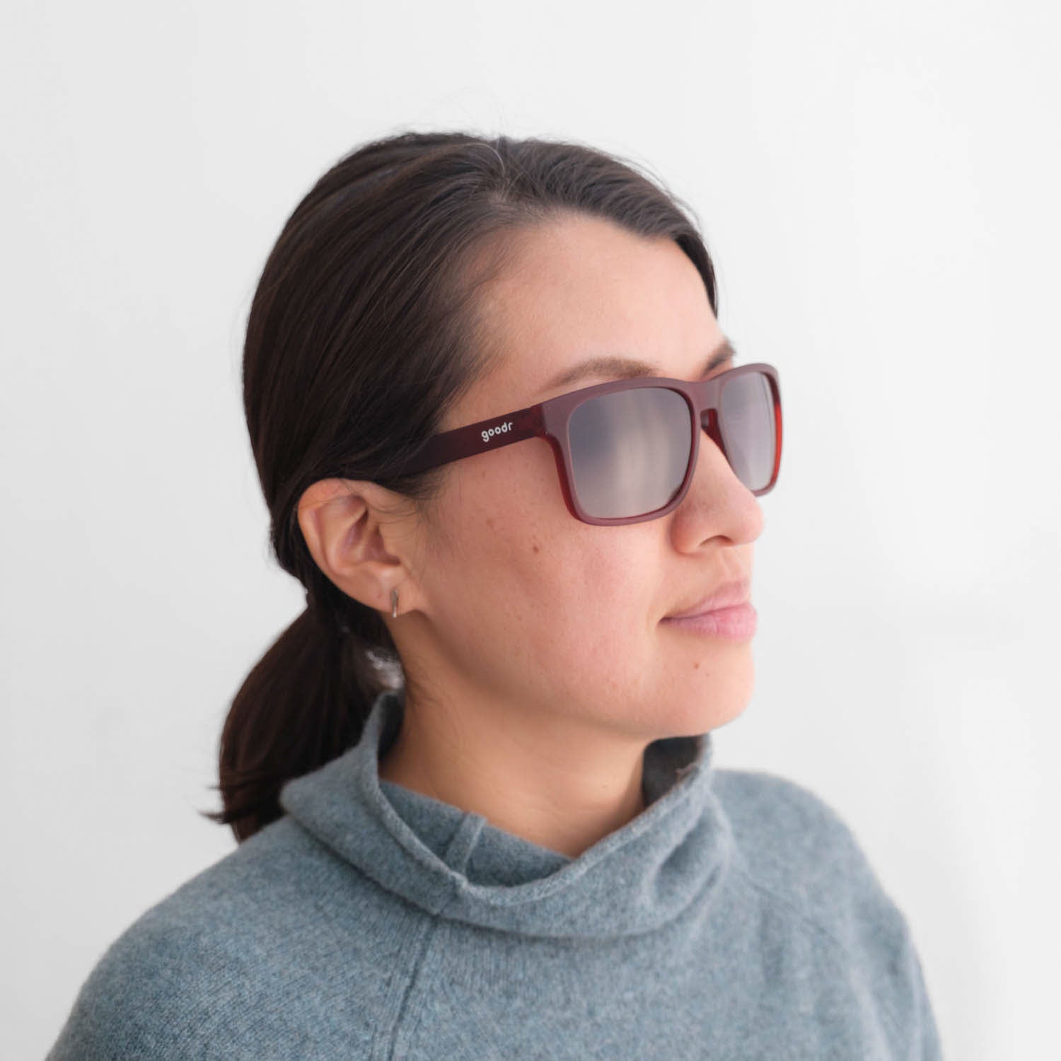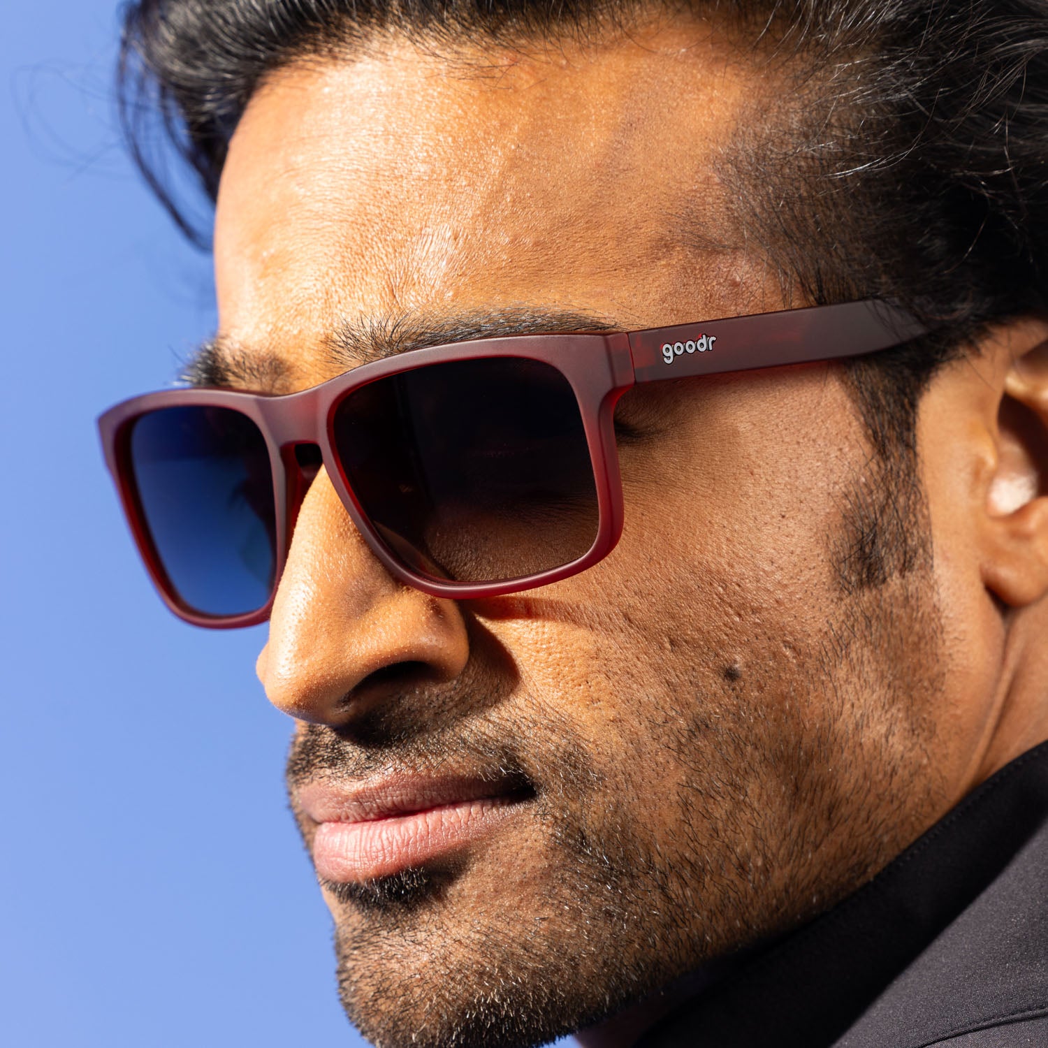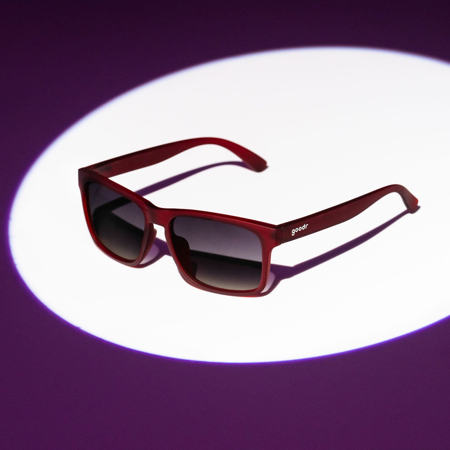 あBlood Moon Barbecue は、ダークレッドの Grand G フレームにブラックグラデーションレンズを合わせた、視線を一気にさらうサングラス。ビッグヘッドな人にも、人生をフルボリュームで楽しみたい人にもハマる一本です。