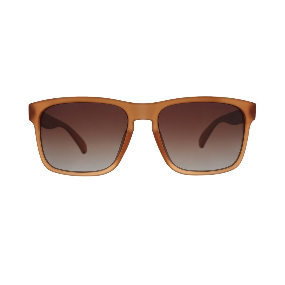 Grand G フレームに大胆で格上げ感のあるスタイルを落とし込んだ一本。 リッチなブラウンフレームにブラウン〜グレーのグラデーションレンズを組み合わせ、かけた瞬間から“勝ちムーブ”の空気をまとえます。