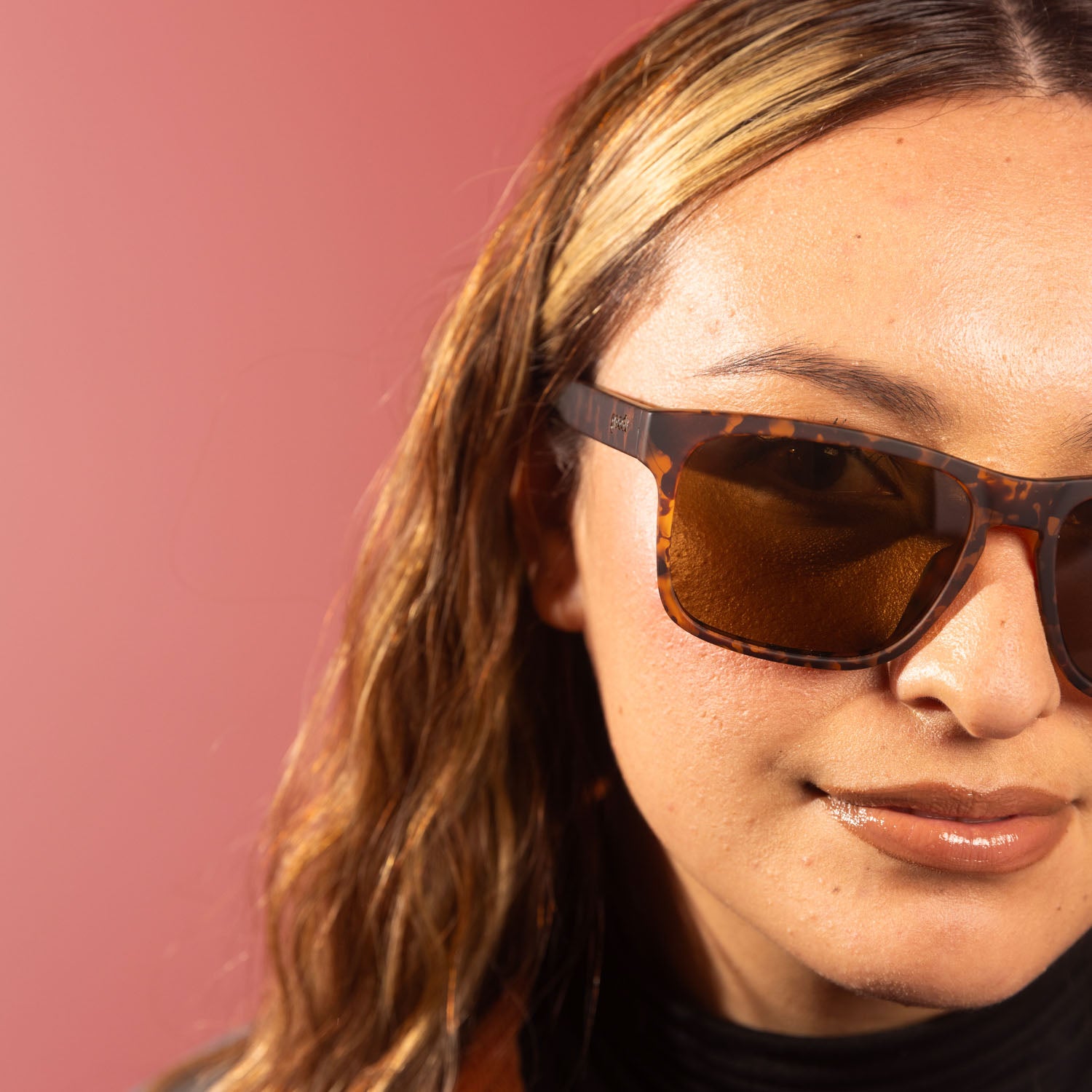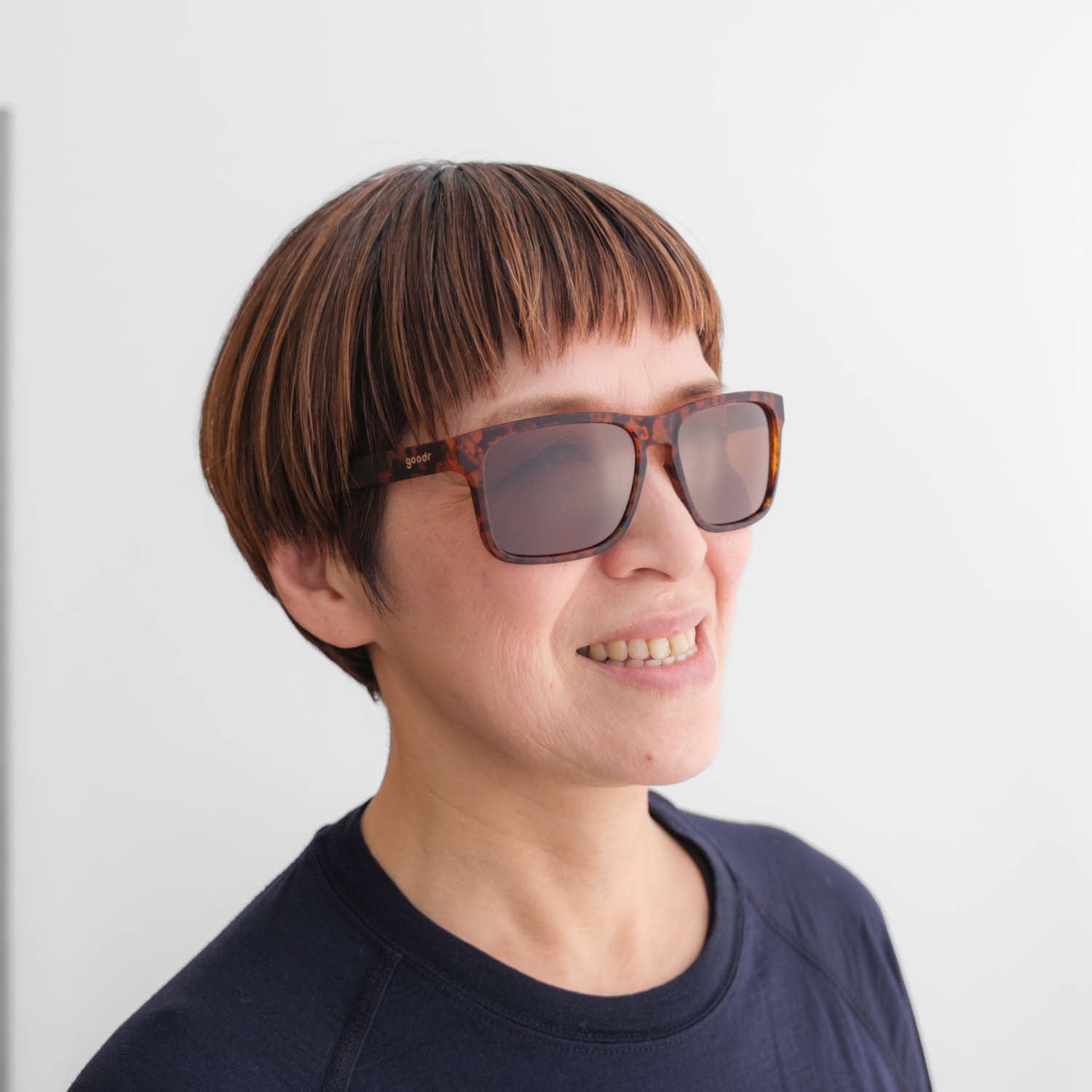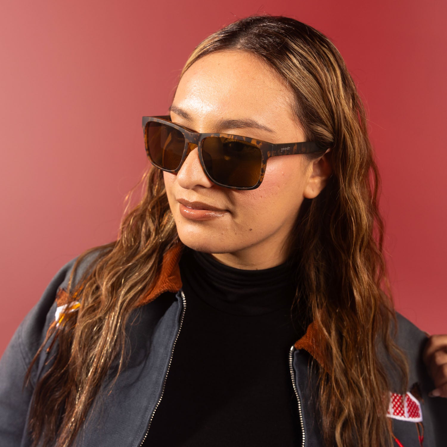 ブラウントータスシェルの Grand G フレームに、非反射のブラウンレンズを組み合わせた、自信たっぷりの存在感を放つ一本。 大きめフェイスの人にも、スタイルに一切妥協しない人にもフィットする、ビッグで大胆なシェードです。
