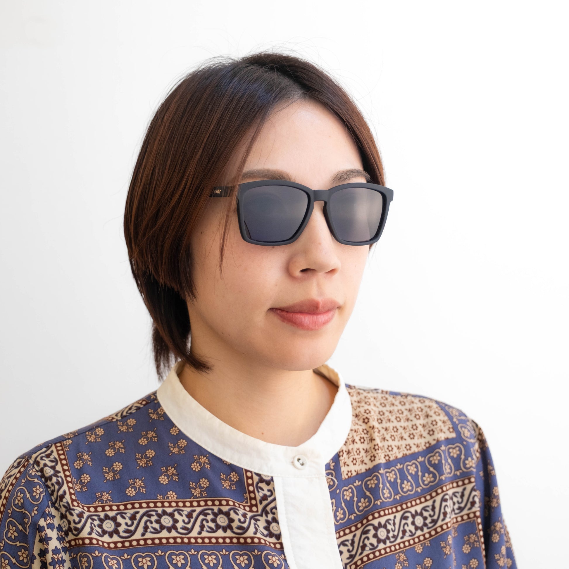 小顔さんのためのブラックサングラス。小さな顔にぴったりフィットして、周りの人が「そのサイズ感うらやましい…」と思わずにはいられない一本です。ランナー、サイクリスト、ゴルファー、そして汗だくで動き回る小顔の猛者たちに最適。激しく動いてもズレにくく、思いっきり活躍できるサングラスです。