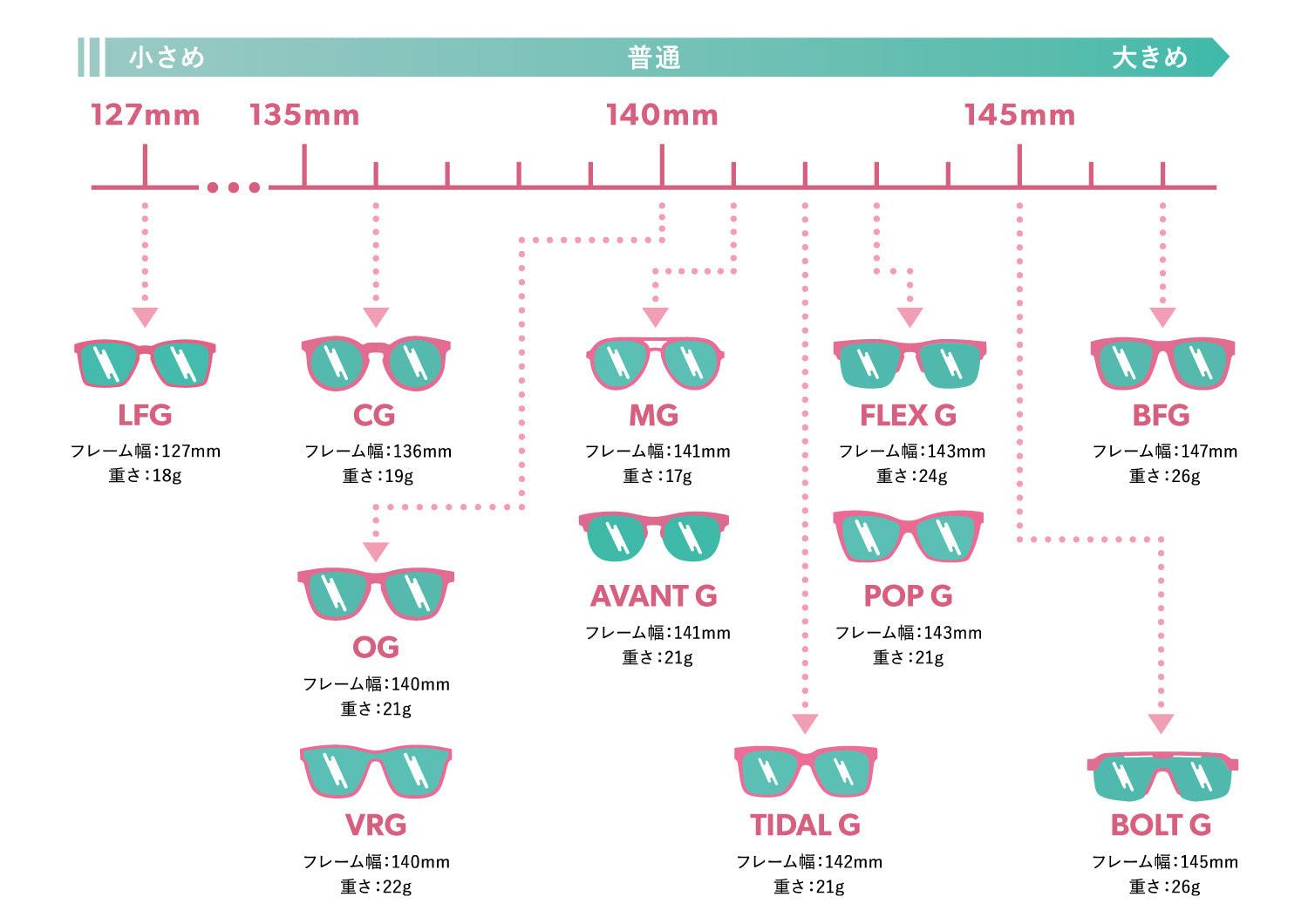 - LFG / 顔幅が狭い小顔の人向けの最小サングラス