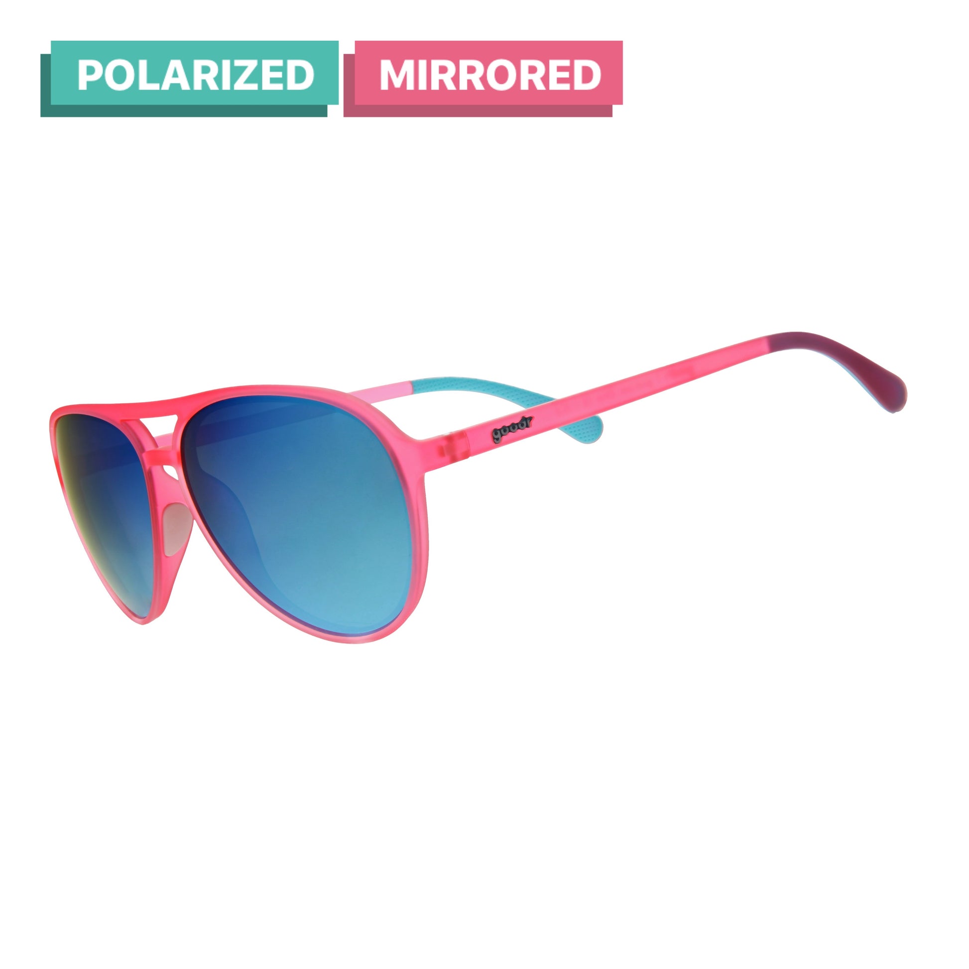 このピンク×ティールのフラミンゴ級サングラスなら、カールがあなたの副操縦士。Mach Gのアビエイターシェードは、ノースリップ・ノーバウンスでズレ知らず。UV400で有害な紫外線をしっかりカット。