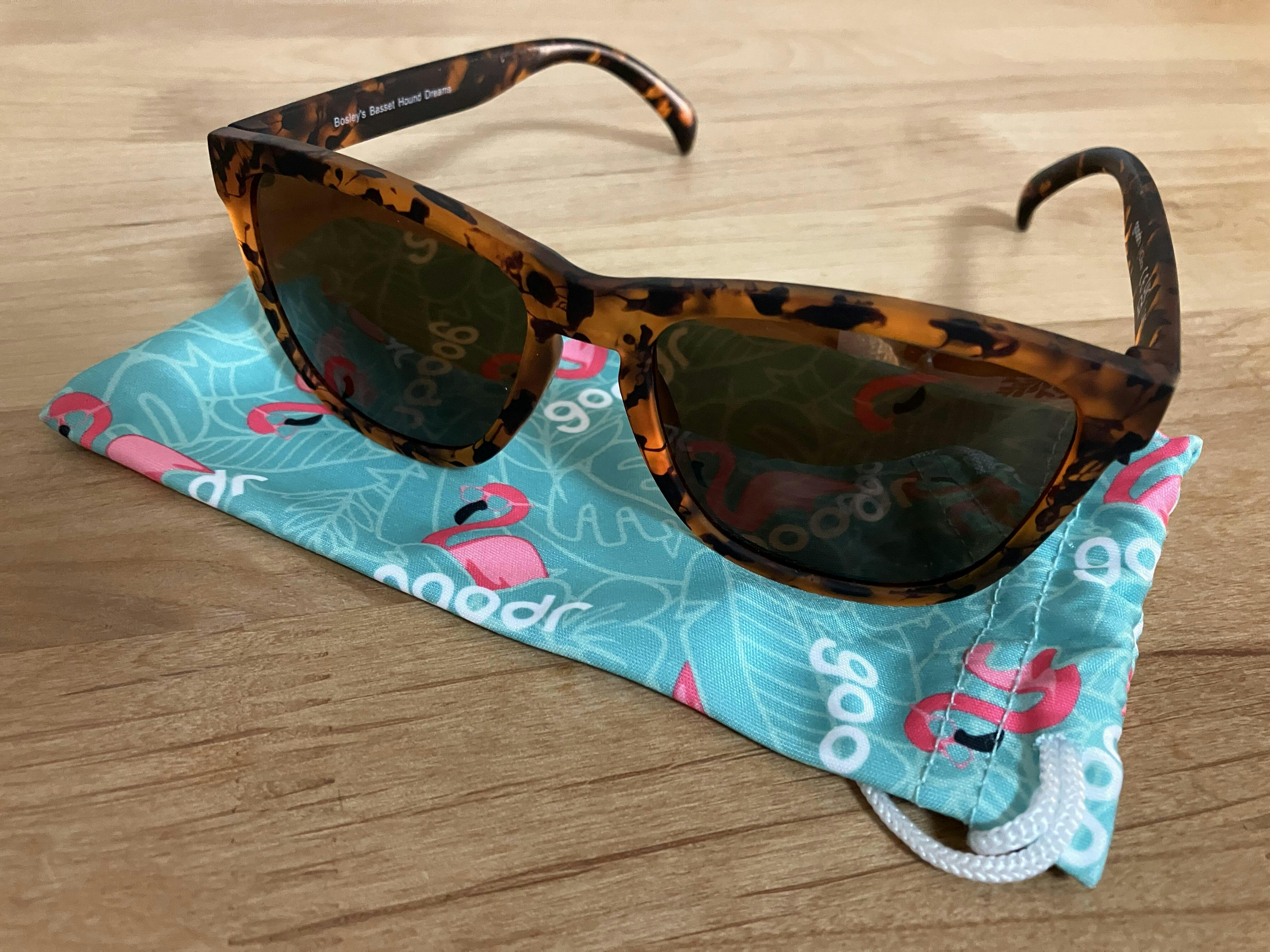 サングラスを入れているgoodr袋はマイクロファイバーのバックとなります。持ち運びはもちろん、お手入れにもぜひご利用ください。