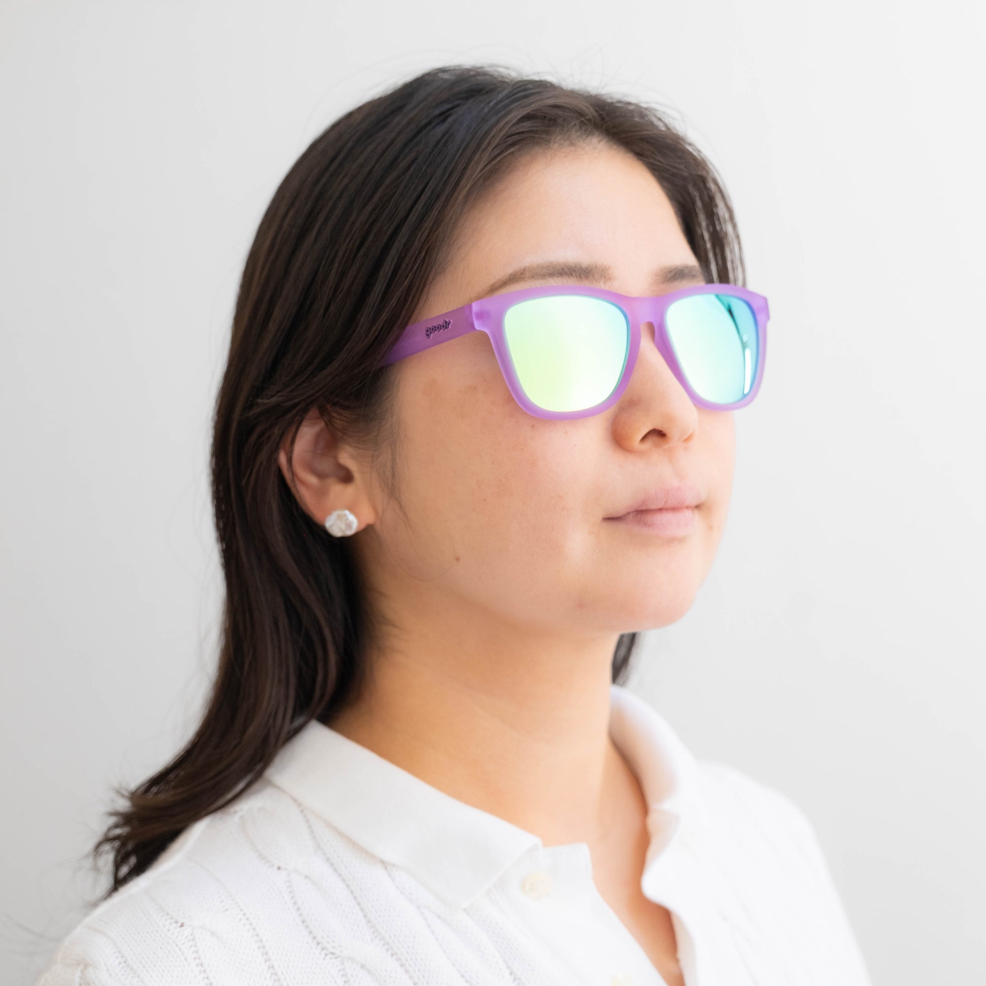 サングラスを入れているgoodr袋はマイクロファイバーのバックとなります。持ち運びはもちろん、お手入れにもぜひご利用ください。